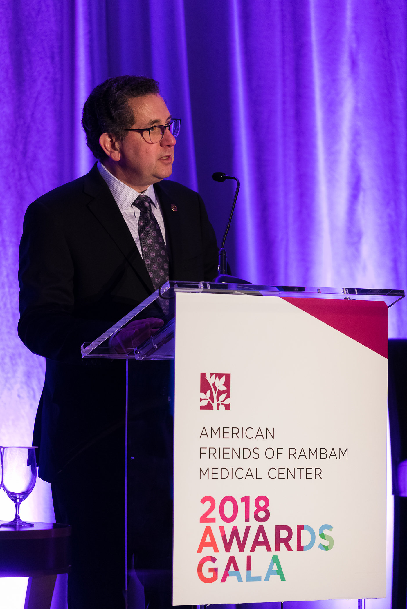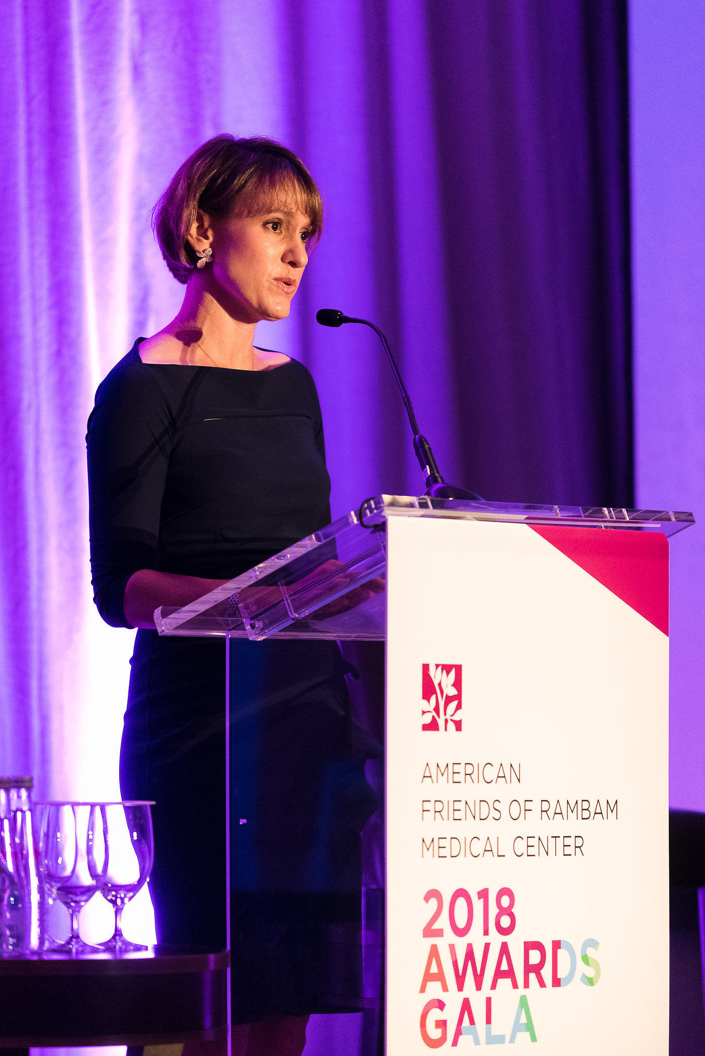 In one of the most moving moments of the evening, Shani Biton thanked Rambam for the care it gave to her teenage daughter, Sofia, who was critically ill with a rare and deadly virus called La Crosse, contracted via a mosquito bite during a camp stay in the U.S. Shani described the incredibly warm and pluralistic atmosphere at Rambam where her daughter was tended to by Jews, Christians and Muslims and treated “as if she were their own child.” Shani also reminded the crowd that the Pediatric Intensive Care Unit, where Shani recovered, is also a bomb and chemical weapons shelter. “You are here tonight because you understand the critical and strategic nature of Rambam Hospital. I am here because I owe Rambam my heart as you gave us back our Sofia.”