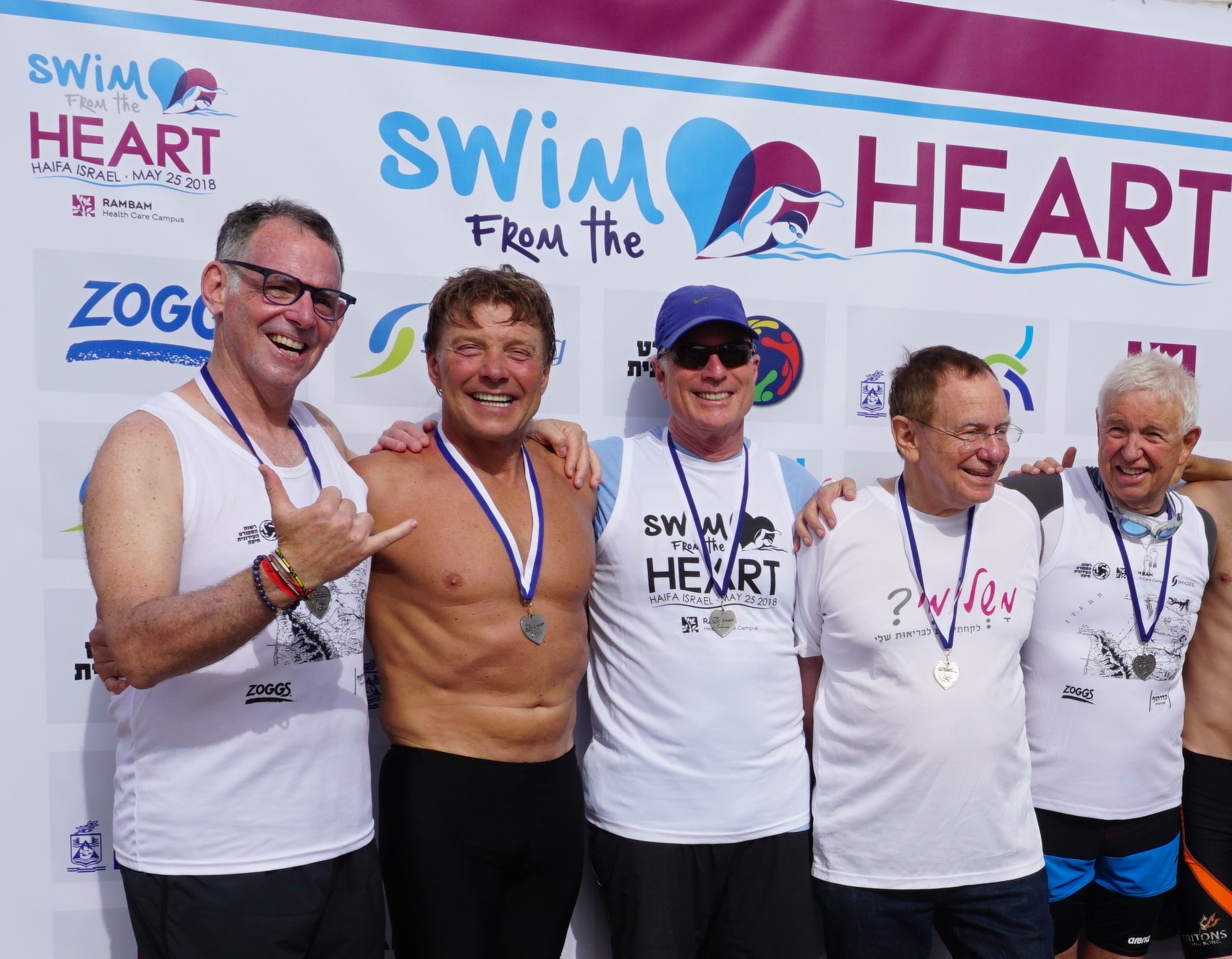 On May 29, 2018, American swimmers Levy Gerzberg, Josh Bernstein, Eric Schleelein, Peter Gertler Richard Gluck, Jamin Gluck and Rick Hirschhaut, traveled to Israel to participate in the 3rd International “Swim From the Heart” meet in Haifa on the Mediterranean.